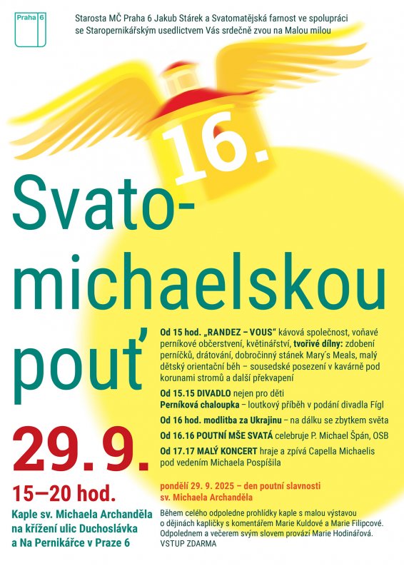 Svatomichaelská pouť V pondělí 29.9. od 15 do 20 hod., kaple sv. Michaela Archanděla na křížení ulic Duchoslávka a Na Pernikářce. Poutní mše svatá v 16:16.